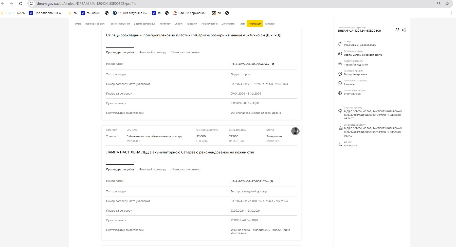 З огляду на те, що станом на 30.09.2025 у Єдиній цифровій інтегрованій інформаційно-аналітичній системі управління процесом відбудови об’єктів нерухомого майна, будівництва та інфраструктури можна ознайомитися з інформацією про використання ресурсів, наданих для відновлення України міжнародними партнерами, а також про суб’єктів, які отримують кошти для реалізації таких проектів (знімки екрана з прикладами додаються), констатуємо, що захід виконано повністю.