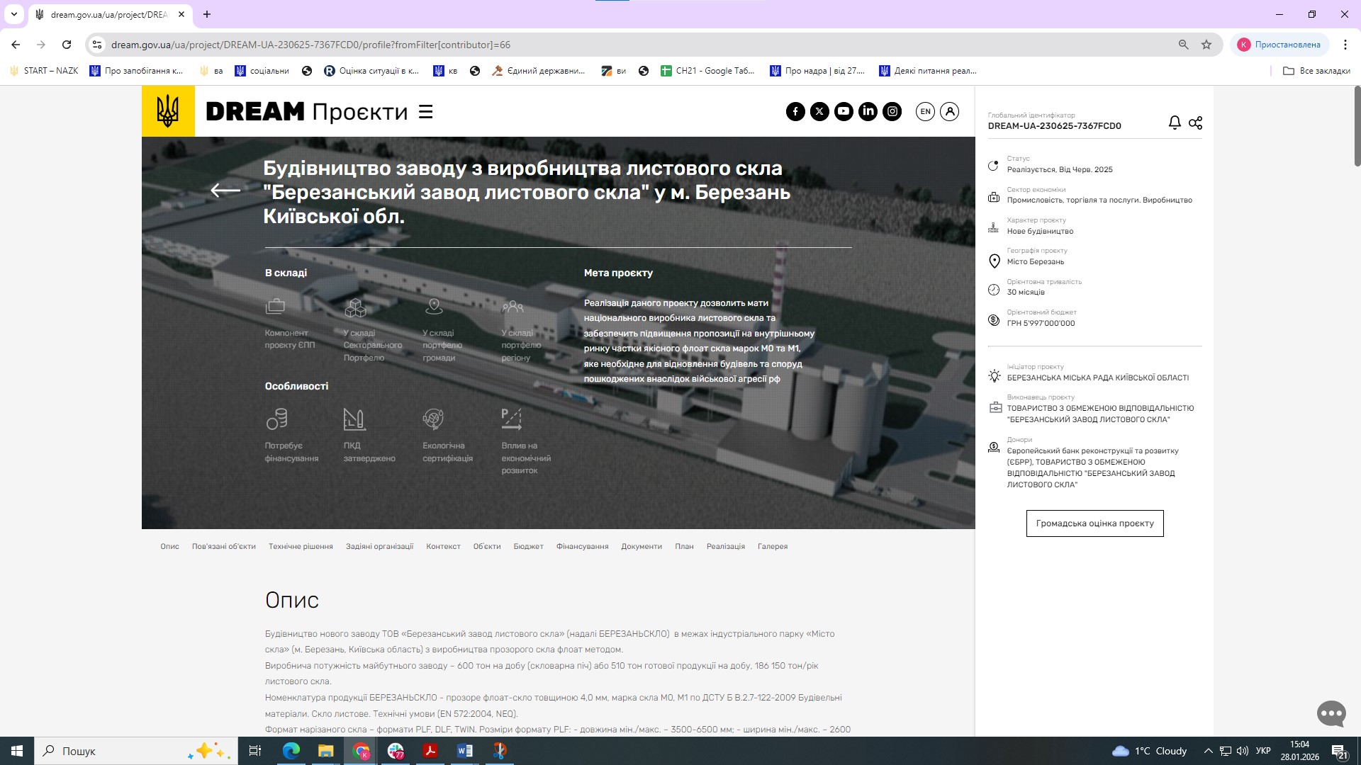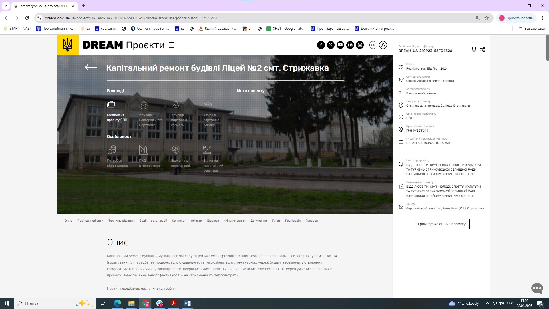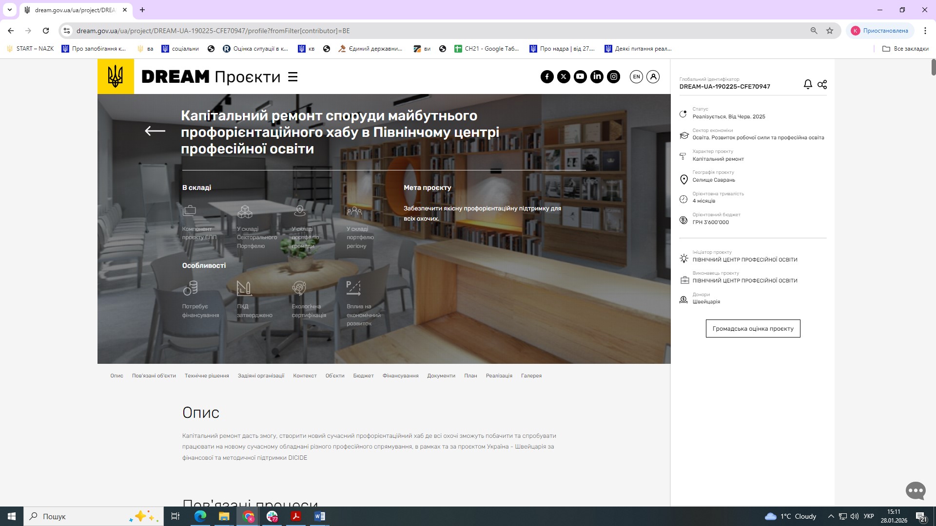 За інформацією Міністерства розвитку громад та територій України у IV кварталі 2025 року: «Забезпечено технічну можливість оновлення на Єдиній цифровій інтегрованій інформаційно-аналітичній системі управління процесом відбудови об'єктів нерухомого майна, будівництва та інфраструктури відомостей про використання ресурсів, наданих для відновлення України міжнародними партнерами, інформації про суб'єктів, які отримують кошти для реалізації таких проектів». Знімки екрана з підтвердженнями додаються. Констатуємо, що станом на 31.12.2025 цей захід виконано.